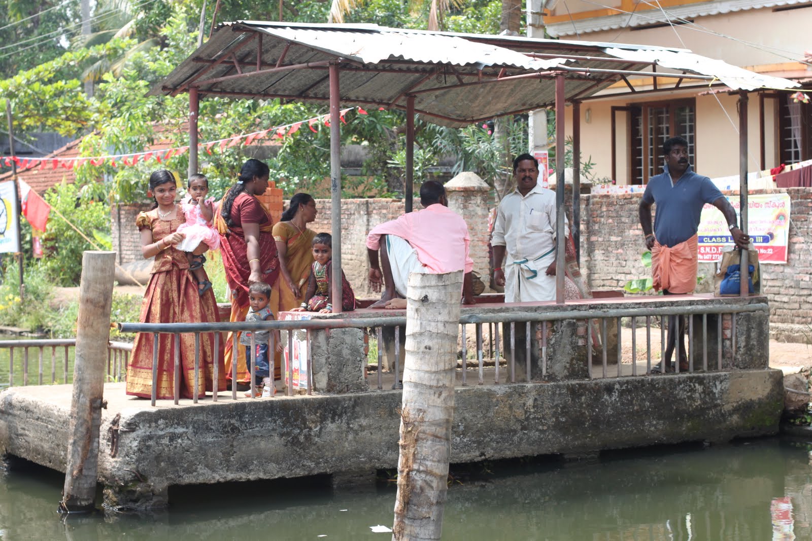 We weren’t allowed to take photos in the temple, so let me describe the temple for you. The temple was at the end of Jew Town road, with a bit of an open field on one side of the street, blocked by a gate with Jewish stars and menorahs on it. The temple had a small museum with paintings that adeptly told the story I repeated above of how the Jews got to Kochin. Our kids were fascinated when Ken digested it for them. The temple was pretty simple, white, with a small sort of bell tower at the top. And, the ceiling as covered in glass chandeliers, and a pulpit in the middle, as is typical of Sephardic Jews. The Torah was in the back, with the Ten Commandments in Hebrew on either side.